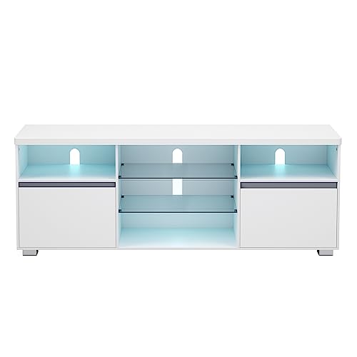 VASAGLE Kailyn Collection – TV-skåp med LED-belysning, TV-bord, TV-stativ för TV upp till 70 tum, med öppna hyllor, 2 skåp med dörrar, 160 cm, för vardagsrum, vit LTV331T10