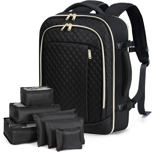Lekespring Kabinbagage 45 x 36 x 20 easyjet reseryggsäck | kabinväska herr dam - väska 40 x 20 x 25 x 25 ryanair med 6 organisationspåsar - affärsresa skola semester, Svart, XL: 44x19x32 (27L),
