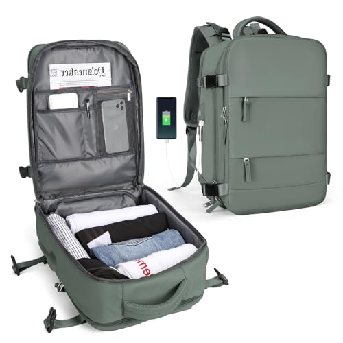 VOESLD Reseryggsäck, kabinväska, 45 x 36 x 20 cm, Easyjet-väska, 40 x 20 x 25 cm, väska för Ryanair, ryggsäck för bärbar dator, fritidsryggsäck med USB-port, för män och kvinnor, Färg: grön, 45x36x20