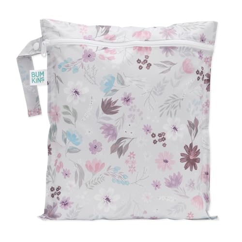 Bumkins Vattentäta våtväskor för baby, resor, baddräkt, tygblöjor, pumpdelar, gymkläder, toalettartiklar, rem till barnvagn, återanvändbar väska med dragkedja, packpåse, Blommig, 1 Count (Pack of 1),