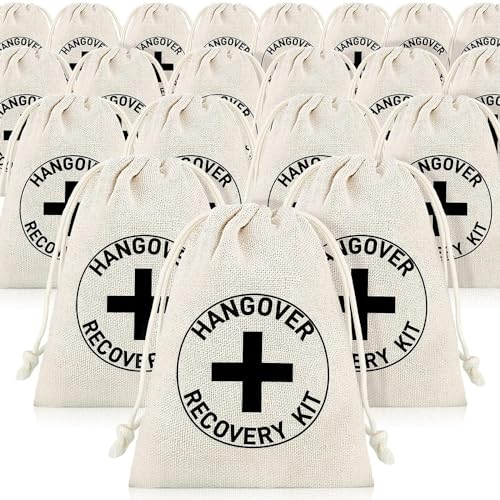 CHTME Hangover Kit Väska - 20 st Jutesäckar, Linne Första Hjälpen Kit Påsar för Bröllop Festtillbehör - Presentpåsar
