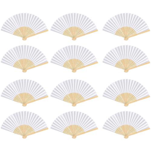 ZITUZY 12 st bröllopsfläkt, vit bröllopsfläkt, AolKee, vit fläkt, för bröllop, sommarfest, med väska (vit)
