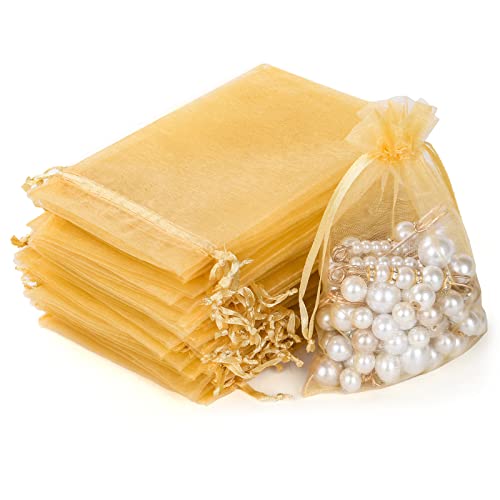 Aucuu 105 st Organza väskor, 10 x 15 cm guld påsar gåva organiserade påsar med dragsnodd, smycken väska lavendelpåsar bröllop favör väskor, godis påsar gåvor