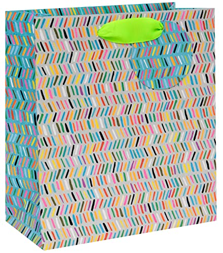 Glick Lyxig presentväska, grattis på födelsedagen blått mönster medium, blågrön, firande, för födelsedagar/bröllop/möhippor/babyshowers/husuppvärmning/tack, flerfärgad, väska – medium