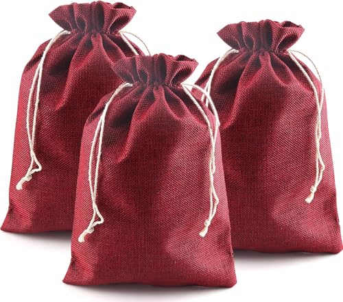 YIEUR 10 stycken jutesäckar röd adventskalender påsar för bröllop förlovning adventskalender, 20 x 30 cm stor väska jul adventskalender presentpåsar (röd-20 x 30 cm)