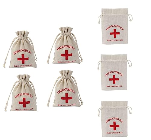 LUMoony Hangover Bag presentpåsar 10 x 15 cm liten väska med dragsko rött kors bomullspåse linne första hjälpen kit påsar perfekt för bröllop festtillbehör jutesäckar hängande kit
