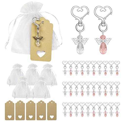 Newaner 32 stycken gästpresenter dop bröllop med organza-väska och hängsmycken i kraftpapper, skyddsängel hänge present till gäster, nattvardsgång konfirmation present bordsdekoration present,