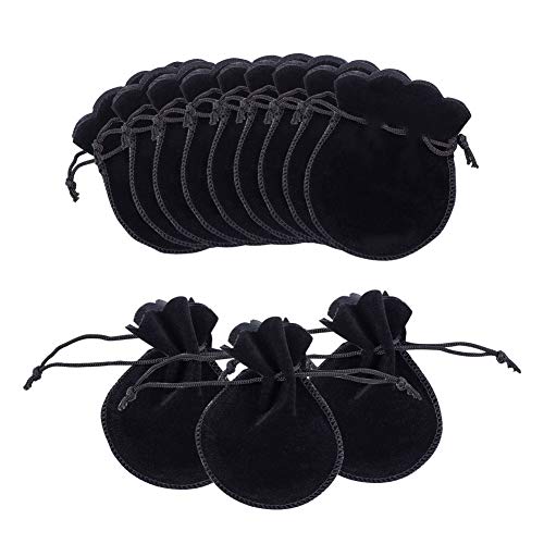 NBEADS 200 st små smycken bröllop favör väska calabash form dragsko smycken påsar sammet dragsnöre väskor små godis presentpåsar för jul födelsedagsfest gåvor, svart, 9 x 7 cm