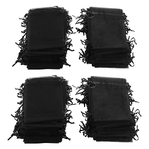 Mini Organza-väska Genomskinliga Organza-väskor Organza Dragsko Påse,200 Organzapåsar 4 Strängmönster För Bröllop Smycken Dekoration Svart För Festdekoration För Bröllop Smycken