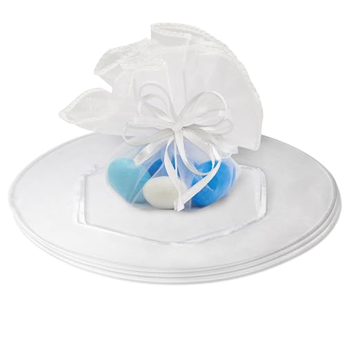 Decoraparty 10 vita konfettipåsar med snöre – runda organzapåsar för gynnande, nattvard, dop, bröllop, konfekt, väska (set om 10)