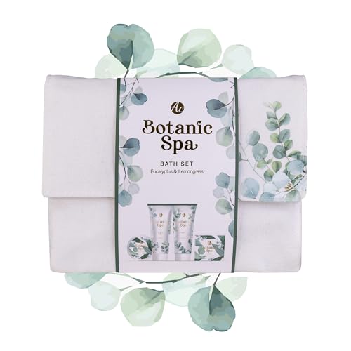 Accentra BOTANIC SPA presentset för kvinnor med väska, sminkväska med 4 kroppsvårdsprodukter: duschgel, handkräm och kroppssmör, duschset för kvinnor för alla hjärtans dag, mors dag eller jul