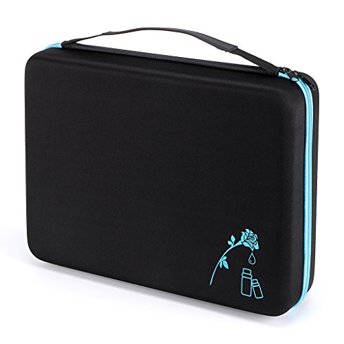 Hipiwe 108 Essential Oils Carrying Case Holds 5ml, 10ml, 15ml Bottles Hard Shell Exterior EVA Essential Oils Storage Organzier Bag with Foam Insert and Carrying Handle (Black+Blue 108)