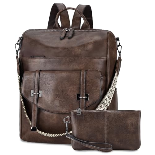 Kasgo Ryggsäck Handväska för kvinnor, PU-läder ryggsäck väska damer konvertibel axelväska handväska mångsidig dagväska väskor för arbete resa skola, Kaffe, Avslappnad
