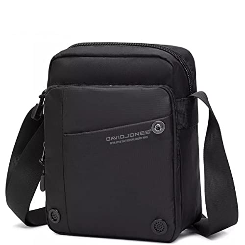 David Jones - Herr Liten Axelremsväska - Nylon Axelväska Män - Praktisk Handväska - Klassisk Crossbody Väska - Bag Business Arbete Sport Resa Mode Kontor Vardag Trendig Universitet - Svart