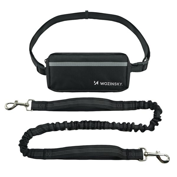 Wozinsky WPST-01 Höftbälte med väska och elastiskt koppel för löpning med hund - Svart