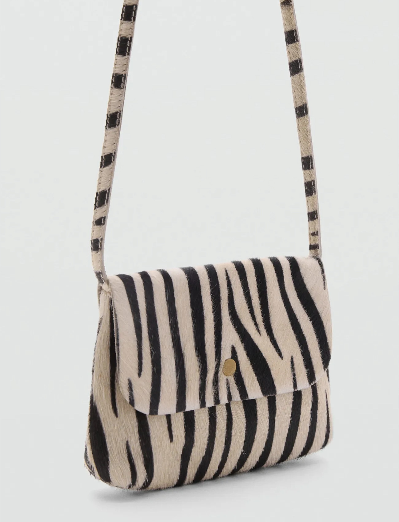 Mango Animal Print Leather Bag - Cream - ONE SIZE