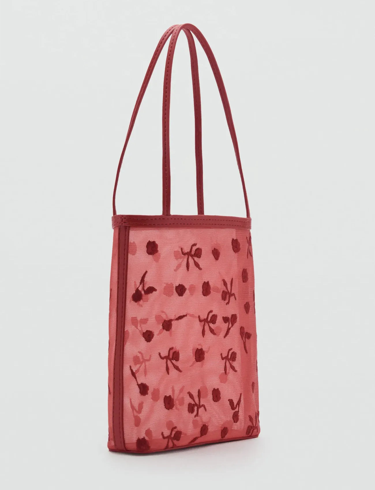 Mango Flower-Embroidered Mesh Bag - Red - ONE SIZE