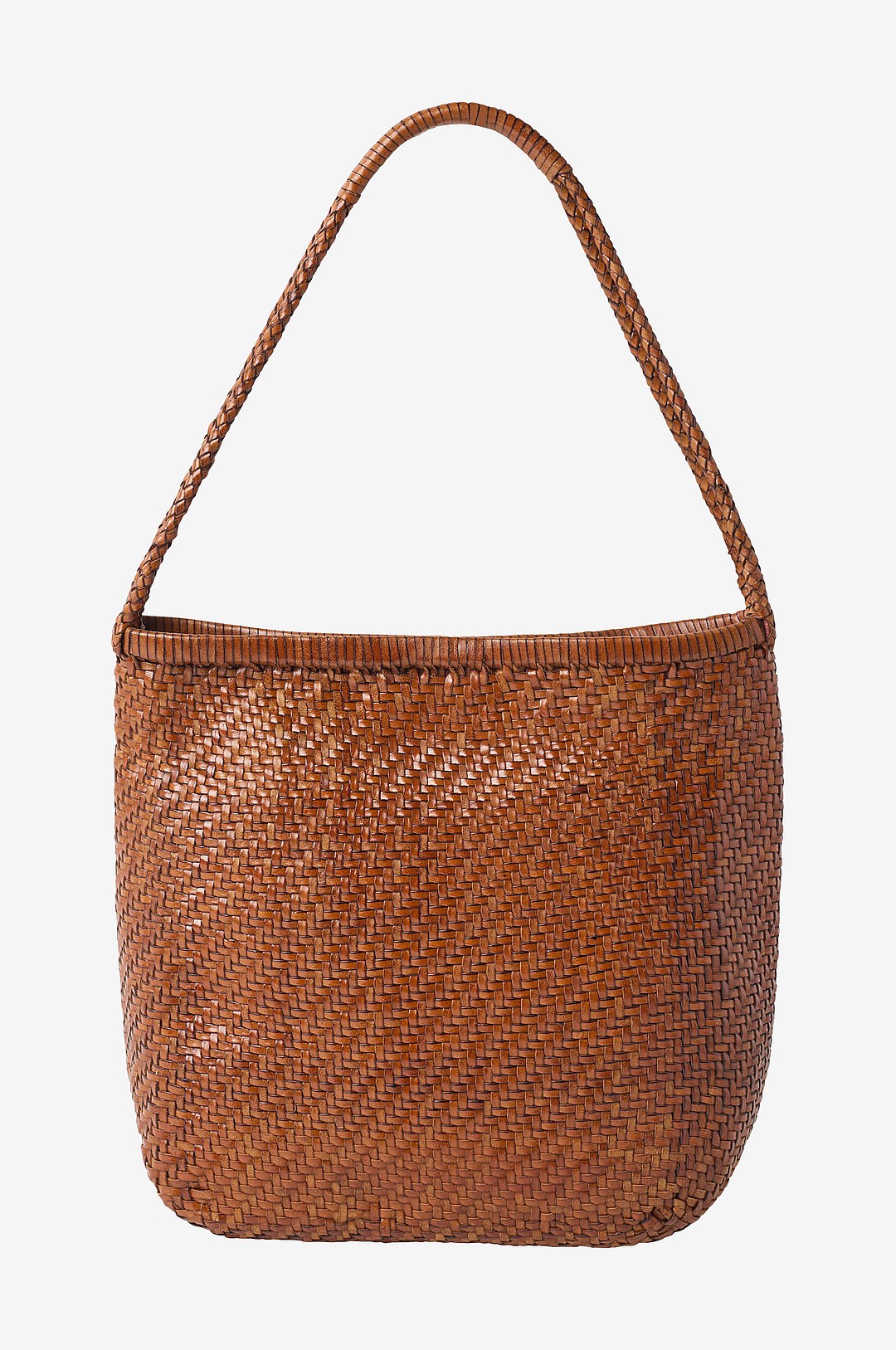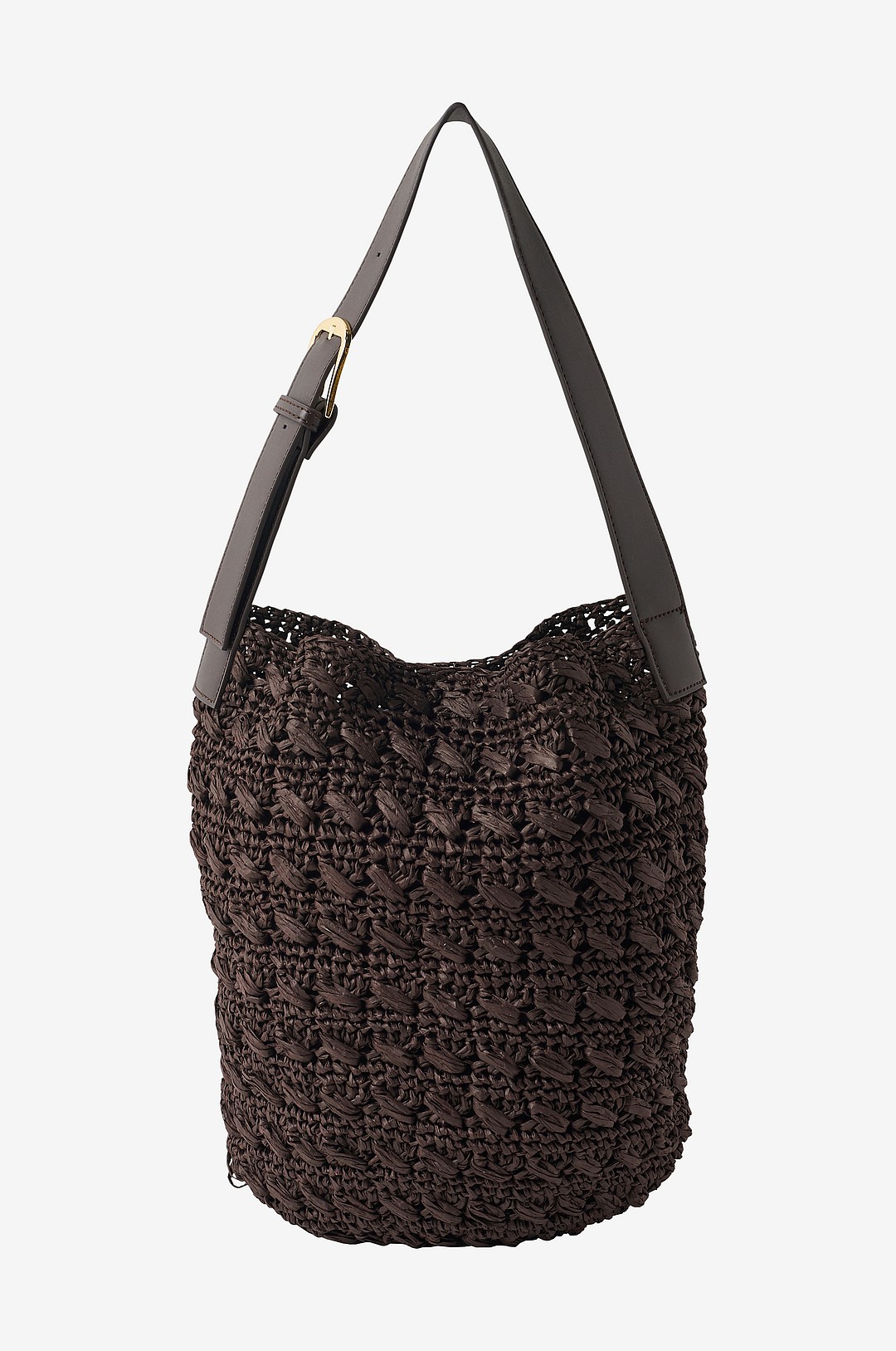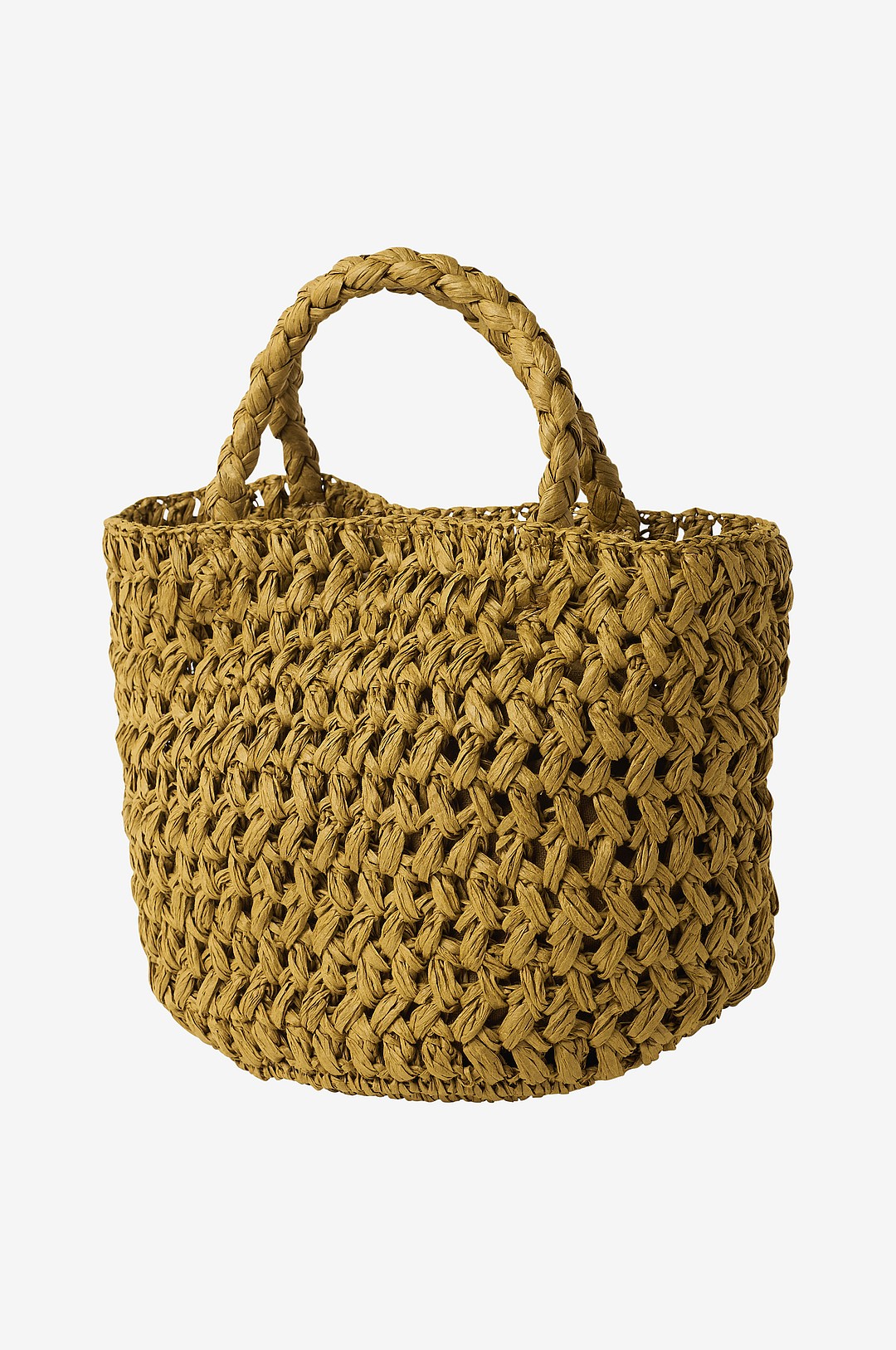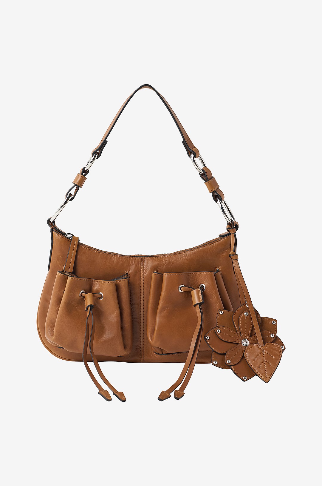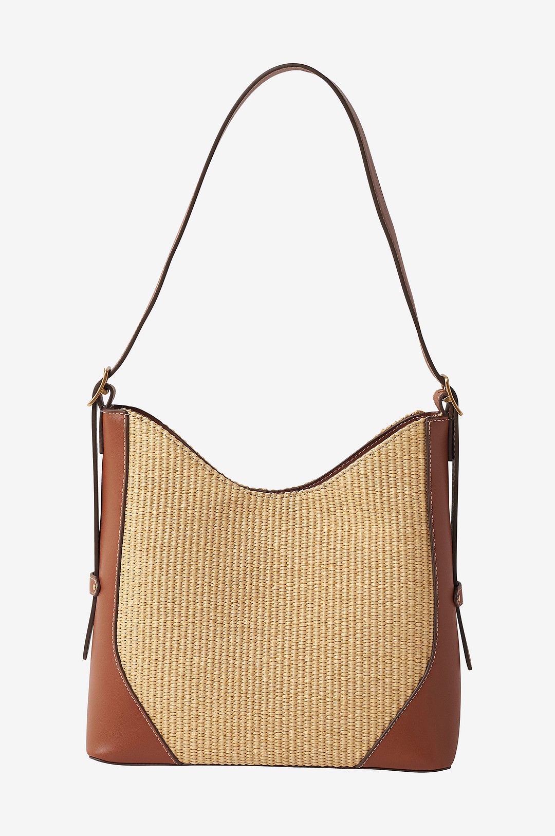 Mango Natural Fibre Shoulder Bag With Flower Charm Brun