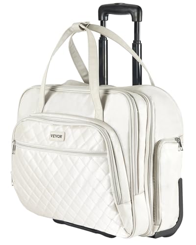 VEVOR Laptopväska med hjul, 15 tum, väska med 2 fasta hjul och teleskophandtag Oxford-tyg, laptopfodral för arbete, resor, affärssaga, Vit, Modern