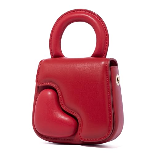 LA FESTIN Läder hjärta plånböcker skolväska väskor för kvinnor med kedja rem - hjärtformade axelremsväskor väskor med hjärta spegel, Röd