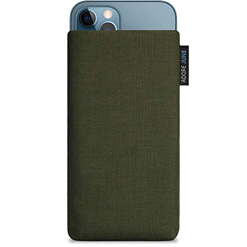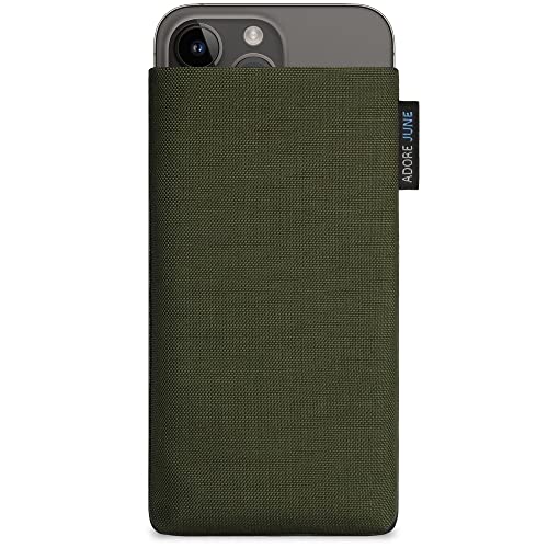 Adore June Klassisk olivgrön väska kompatibel med iPhone 13 Pro Max/iPhone 12 Pro Max mobilväska av resistent Cordura-tyg med displayrengöringseffekt, tillverkad i Europa