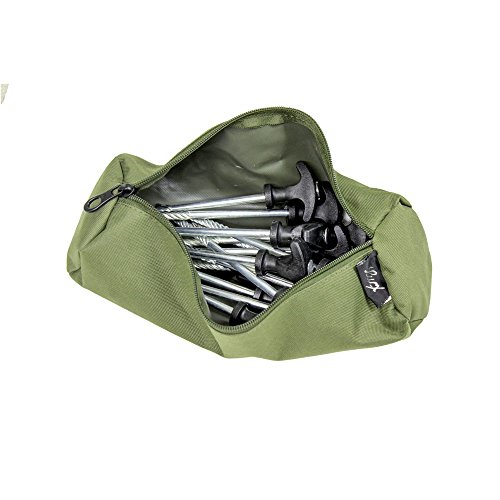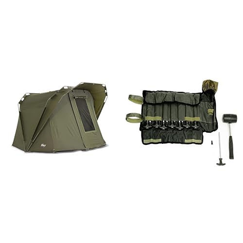 Lucx Bivvy Coon Tälttillbehör, Olivgrön, L & Lucx® pinnar set 14-TLG. inkl. gummihammare och väska för Bivvy jordspikar, tältnaglar för fisketält T – pegs för karptält