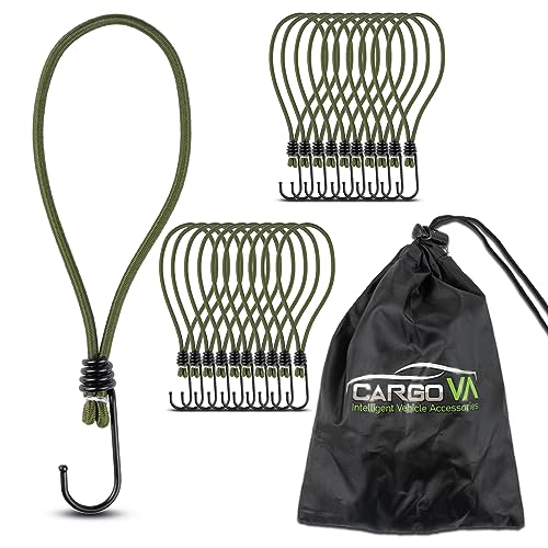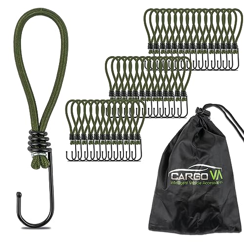 CargoVA® – 20 spänngummi med krokar och praktisk väska – expanderkrok för presenningar och nät olivgrön – 20 cm [20 stycken]