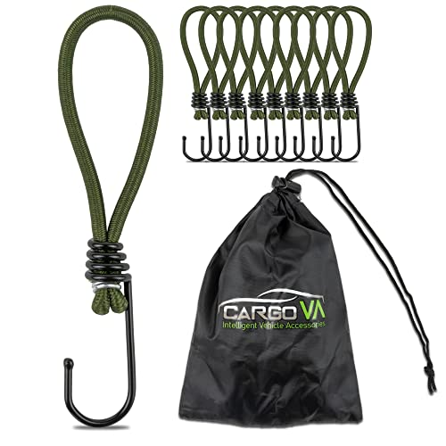 CargoVA® – 10 spänngummi med krokar och praktisk väska – expanderkrok för presenningar och nät olivgrön – 15 cm [10 stycken]