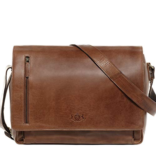 ALASKA EXPORTS handgjorda män äkta vintage läder skolväska messengerman handväska laptop portfölj väska ny (28 x 38 cm), Brun