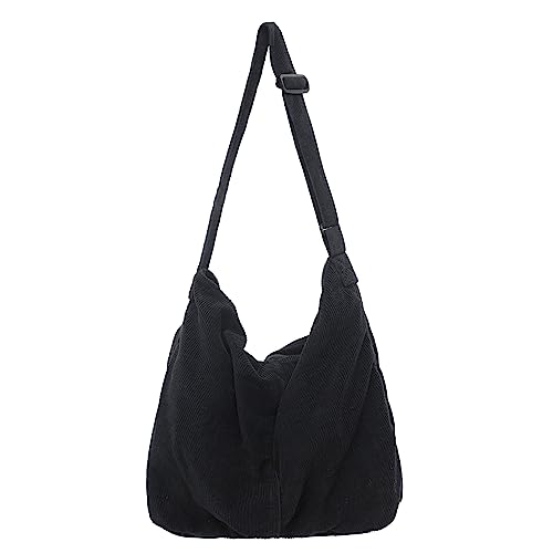 Makukke Axelväska dam handväska, manchesterväskor stor shoppingväska, tygväska, axelväska, vardagsväska, crossbody-väska för skola, kontor, arbete, resor, utflykt, shopping, svart, Retro