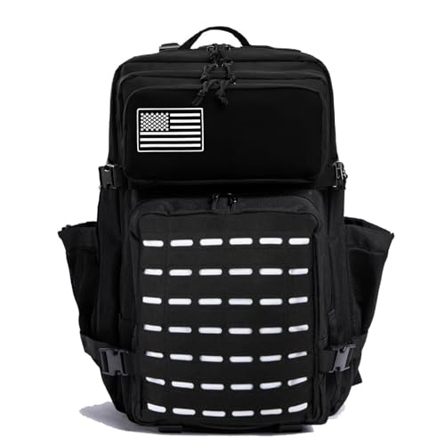 Thuram 50 L taktisk militärryggsäck vattentät hållbar väska för vandring camping fiske gym ryggsäck med flaskhållare, Vitsvart, 50 cm (L)