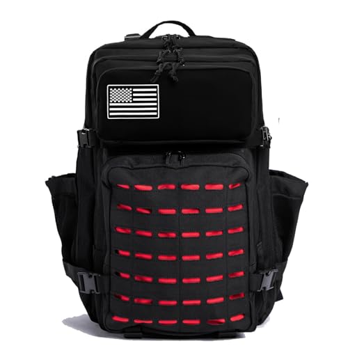 Thuram 50 L taktisk militärryggsäck vattentät hållbar väska för vandring camping fiske gym ryggsäck med flaskhållare, rödsvart, 50 cm (L)