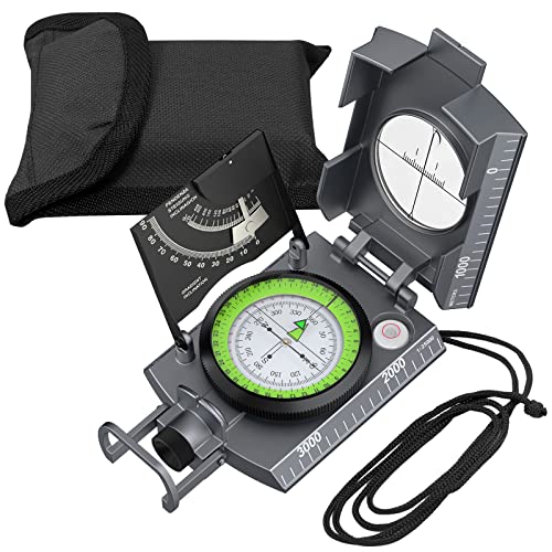 Anbte Professionell Vattentät IP65 Kompass med Klino- och Nivåmätare - Militärkompass med Högre Precision inklusive Väska för Camping, Vandring, Exploration GRÅ