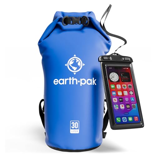 Earth Pak Torrväska, vattentät väska med rulltopp, vattentätt mobiltelefonfodral perfekt för kajak körning fiske forsränning vandring blå 30 l