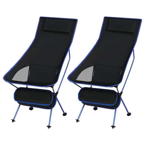 eSituro Hopfällbar fiskestol, ultralätt campingstol, bärbar med väska, fiske vandring resor picknick, belastning 110 kg, svart+blå (2 st)