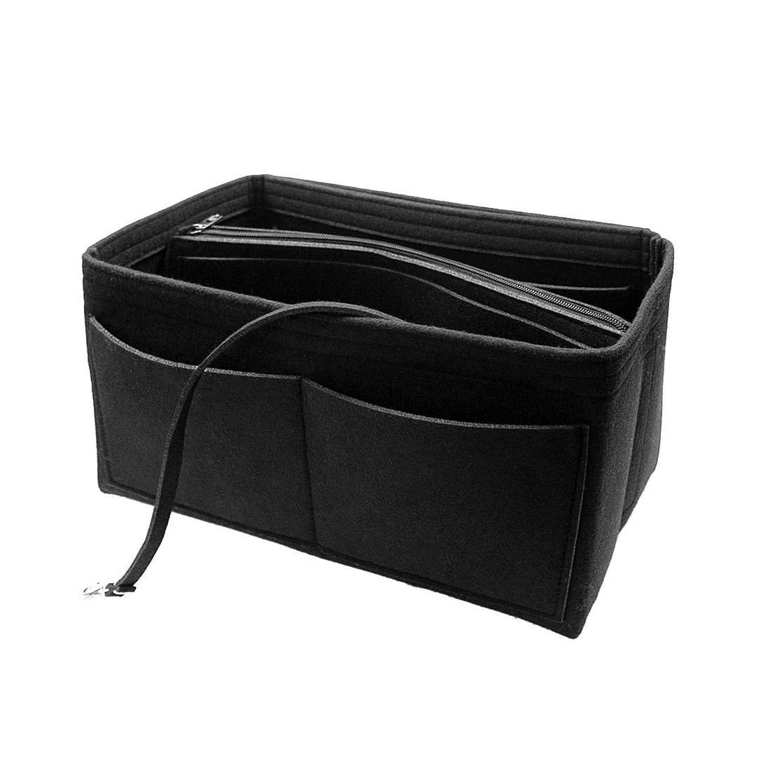 Ropch väskinsats för handväskan, i filt, inre förvaringsväska med flera fack, svart, L