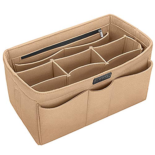 Ropch väskinsats för handväskan, i filt, inre förvaringsväska med flera fack, Beige färg, XL