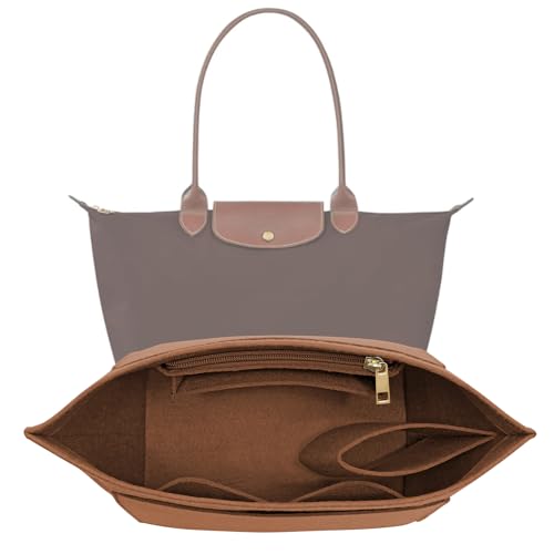 LOUKAYCCI Väskinsats i filt för väskor, för Longchamp Le Pliage S, insats för handväskor (large, brun)