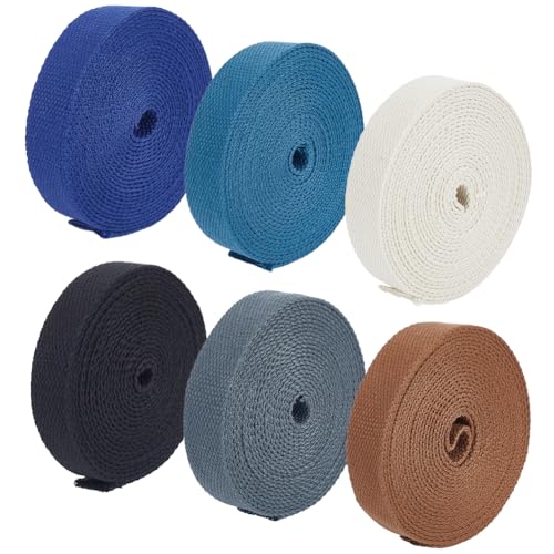 BENECREAT 30 meter 6 färger tunga bomullsband, 25 mm bred lyxig väskrem hög densitet för tygtygtygväskor, koppelremmar, gör-det-själv-tillbehör