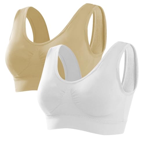 Memoryee sport-bh:ar kvinnor 3-pack set plus size för stora bröst icke trådbundna inlägg tvättbar vadderad push-up multipack väst magtröja för yoga löpning jogging gym, Vit + beige, 3XL
