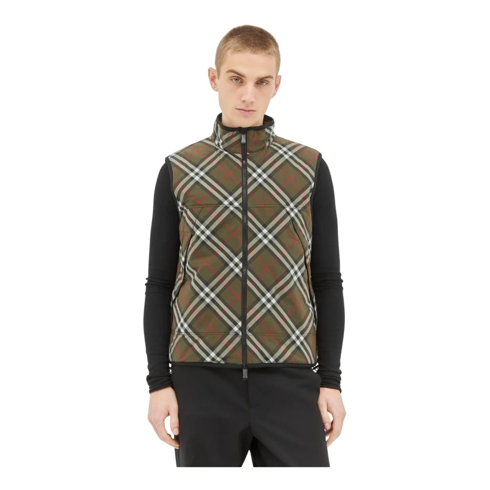Burberry, Jackor , Herr, M, Rutig Vadderad Väst med Stora Fickor