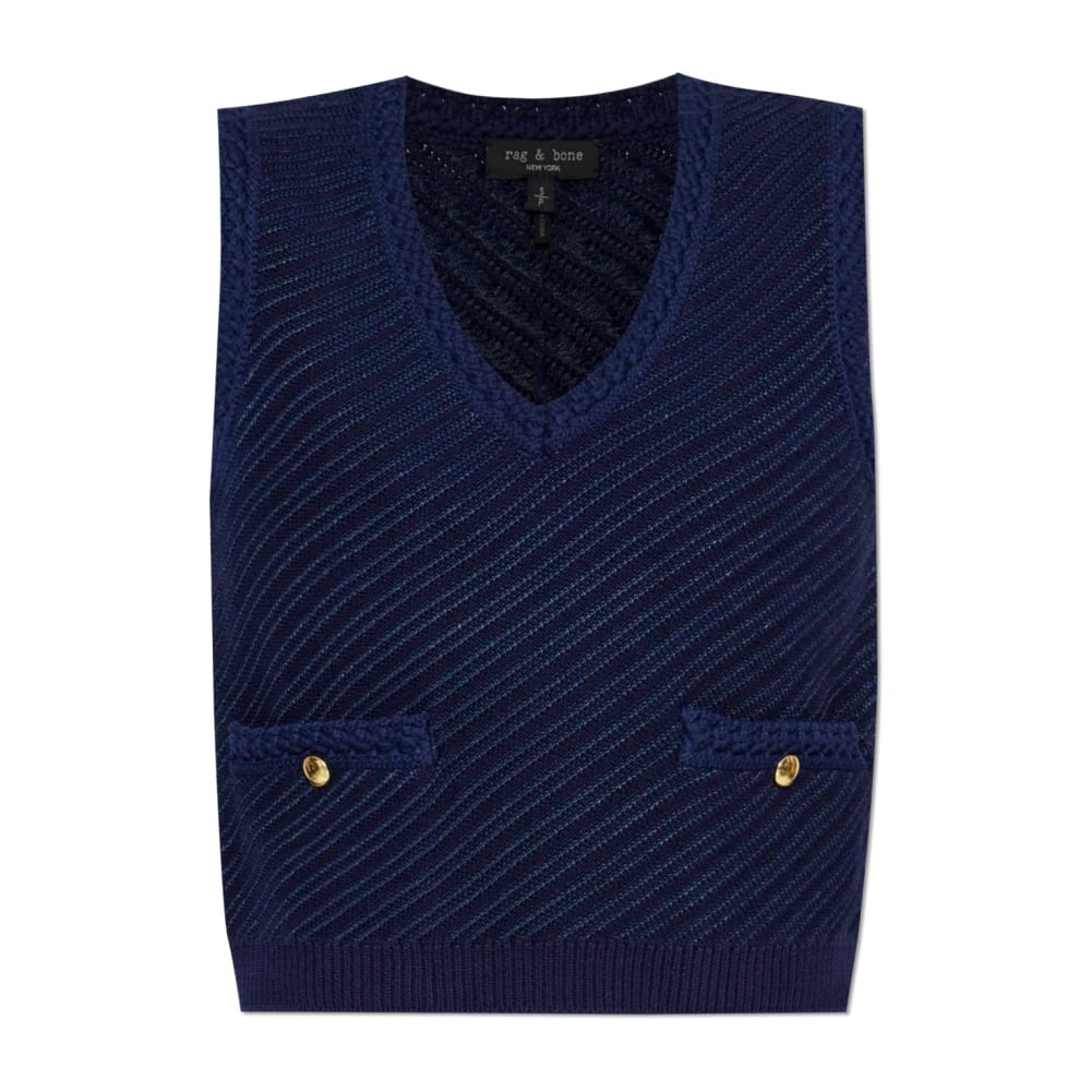 Rag & Bone, Stickade Tröjor , Dam, S, Bomull, Väst med fickor