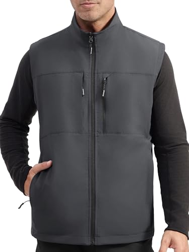 Gratis SOLDIER lätt softshell väst för män, vattentät och vindtät ventilerande väst med flera fickor, sportig för golf, cykling, löpning, vandring och arbete, Grå och svart, S