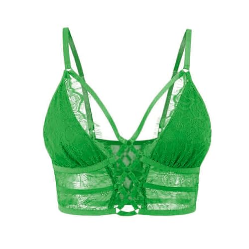 Buitifo Bh-topp för kvinnor, magtröja med korsande fransar, sexig väst, bralette, bysthållare, underkläder, Mörkgrön, L