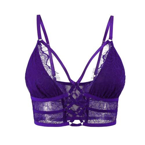 Buitifo Bh-topp för kvinnor, magtröja med korsande fransar, sexig väst, bralette, bysthållare, underkläder, Lila, L