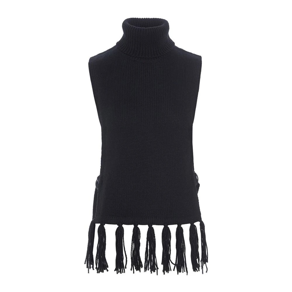 Bitte Kai Rand, Stickade Tröjor , Dam, M, Svart Stickad Väst med Fransar