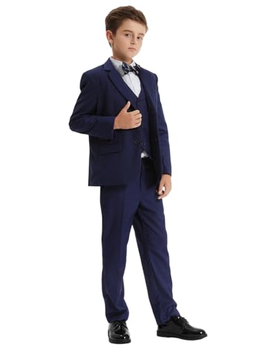 mintgreen pojkar blazer kostym 3 st barnsida pojke outfit set tuexdo blazer + väst + byxa 5-12 år, Mörkblått, 13-14 År