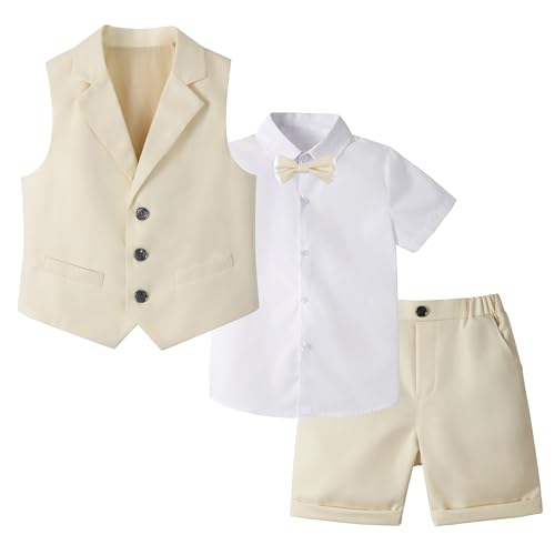 LOLANTA 4-delad barnväst kostym, pojkar bröllopsfest shorts set, sida pojke outfit, skjorta, fluga, shorts, väst, 2-12 år, BEIgE, 5-6 Years