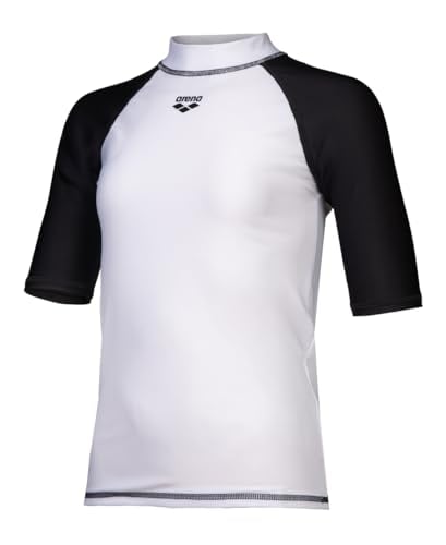 arena Unisex Jr Rash Vest S/S grafisk vakt skjorta pojke, Vit-svart, 14-15 ans