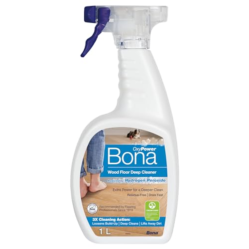 Bona OxyPower Djuprengöringsmedel för Trägolv, Kraftfull Golvrengöring med Väteperoxid, Snabbtorkande Sprayflaska, 1 L